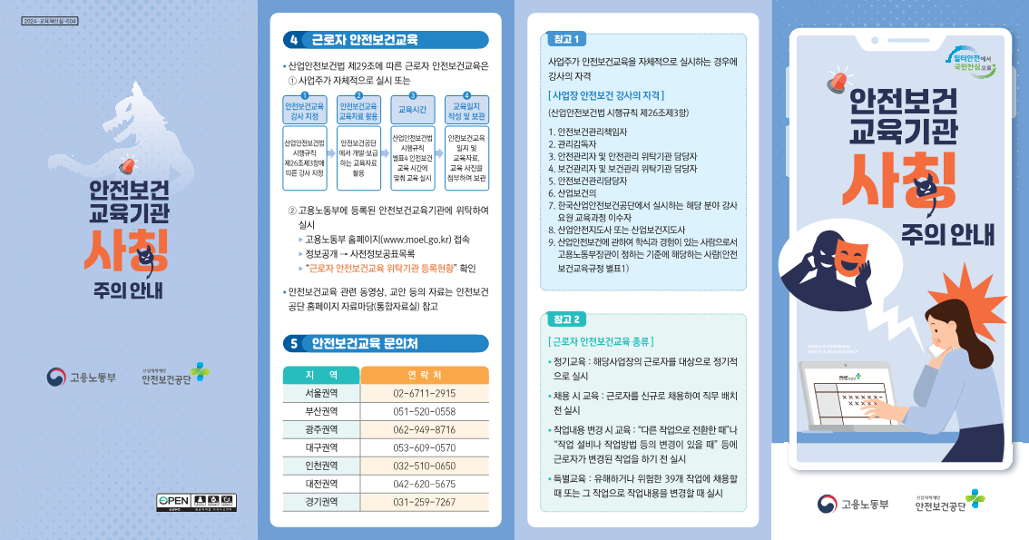 안전보건공단에서 제공하는 [안전보건교육기관 사칭 주의 안내] 리플릿을 게시하오니 업무에 참고하시기 바랍니다.