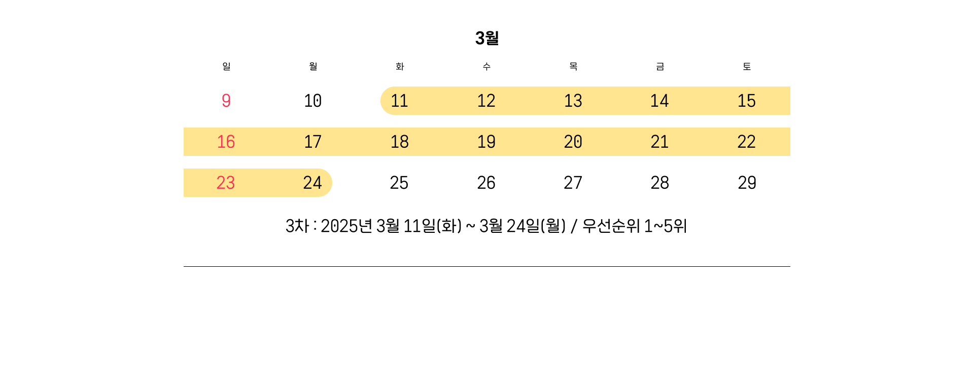 ※ 우선순위에 따라 선정되므로 상위 순위에서 마감될 수 있음